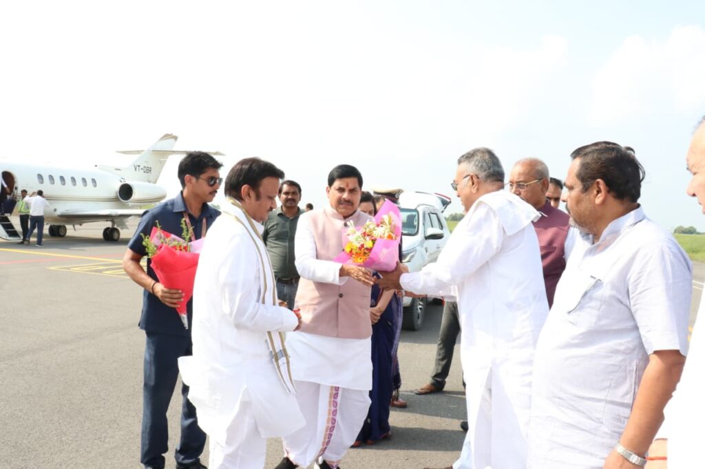 मुख्यमंत्री डॉ. मोहन यादव के रीवा आगमन पर रीवा एयरपोर्ट पर उनका आत्मीय स्वागत किया गया। जैसे ही मुख्यमंत्री का विमान उतरा, उप मुख्यमंत्री राजेन्द्र शुक्ल एवं देवतालाब विधायक तथा मध्यप्रदेश विधानसभा के पूर्व अध्यक्ष गिरीश गौतम ने पुष्पगुच्छ भेंट कर उनका गर्मजोशी से स्वागत किया।