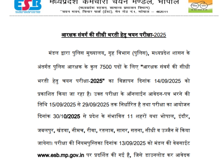 भोपाल। सरकारी नौकरी की तलाश कर रहे युवाओं के लिए अच्छी खबर है। मध्यप्रदेश कर्मचारी चयन मंडल,...